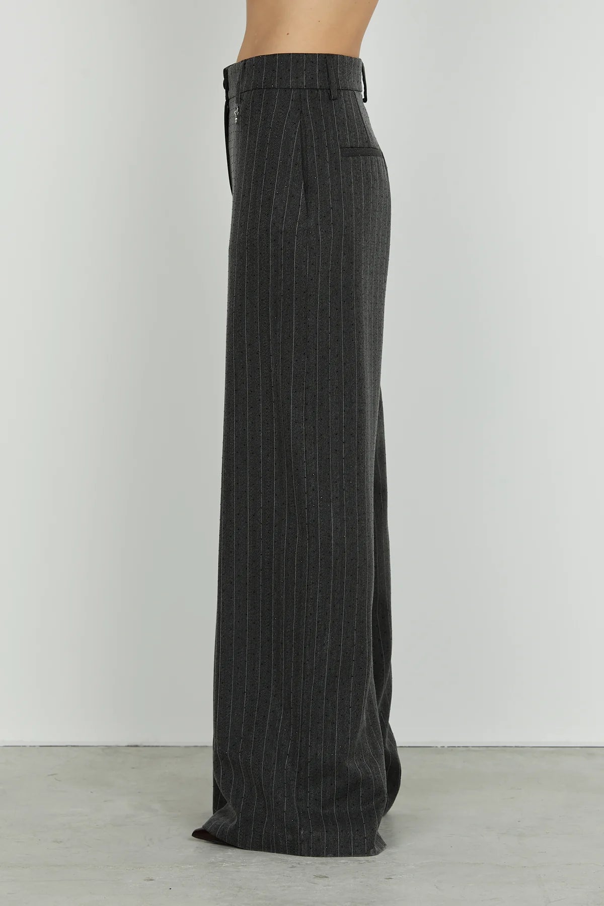 Con la sua linea palazzo e la vita alta che slancia la figura, il pantalone PREZIOSAM unisce il fascino senza tempo del gessato a un tocco di luce grazie ai brillantini delicati. Perfetto per look sofisticati con un twist brillante, dal giorno alla sera.