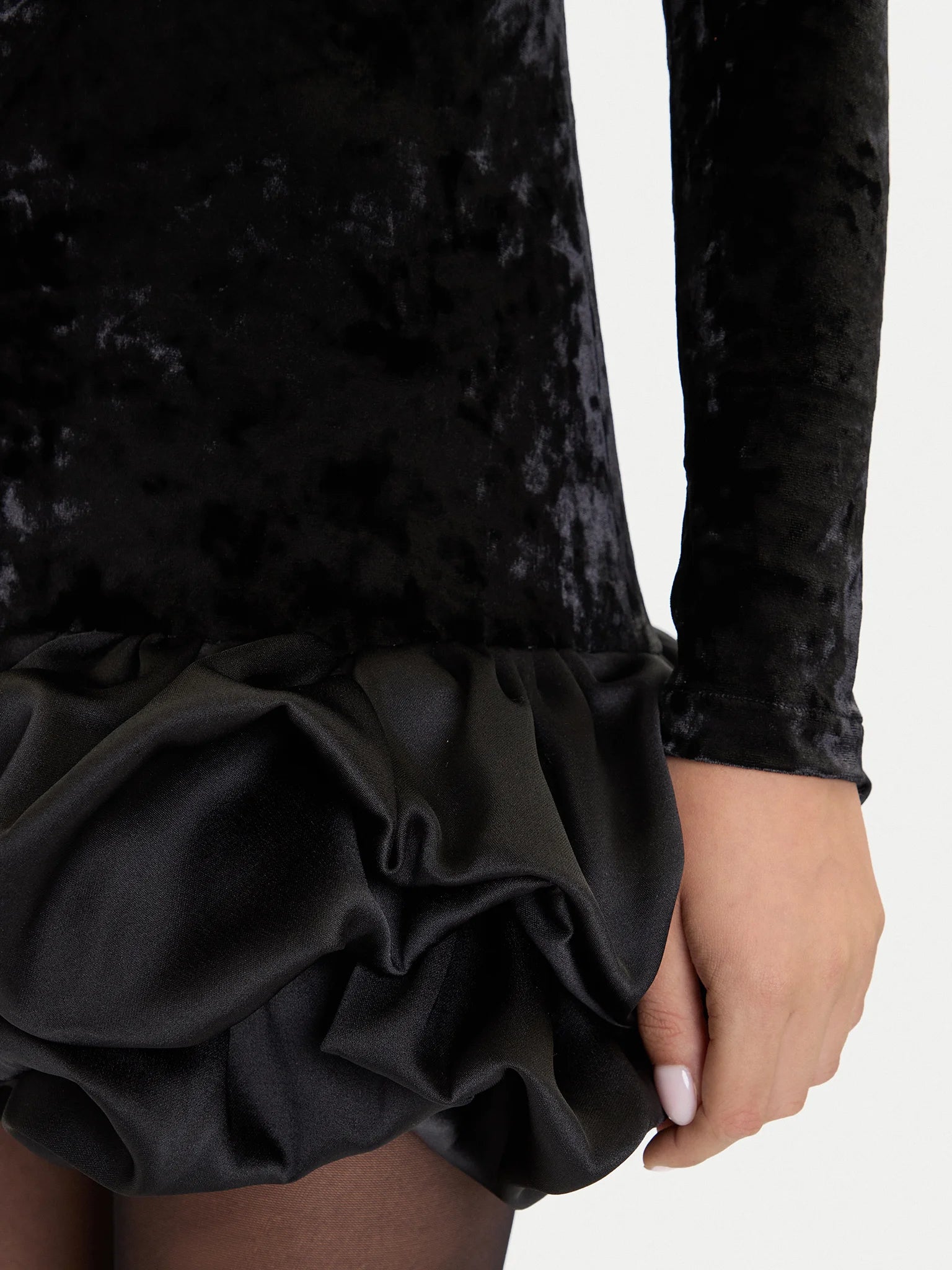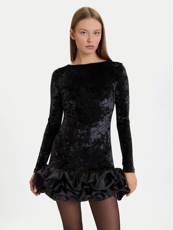 Abito in velluto Eleh con pantaloncini incorporato con balze sul fondo.