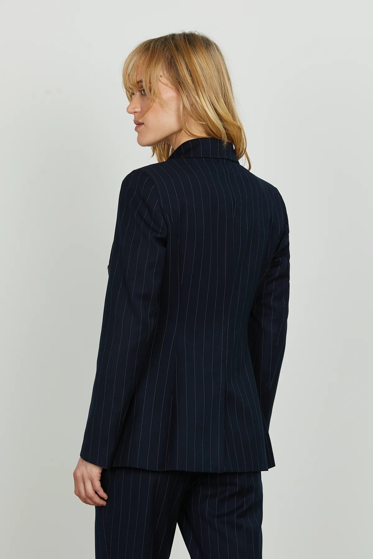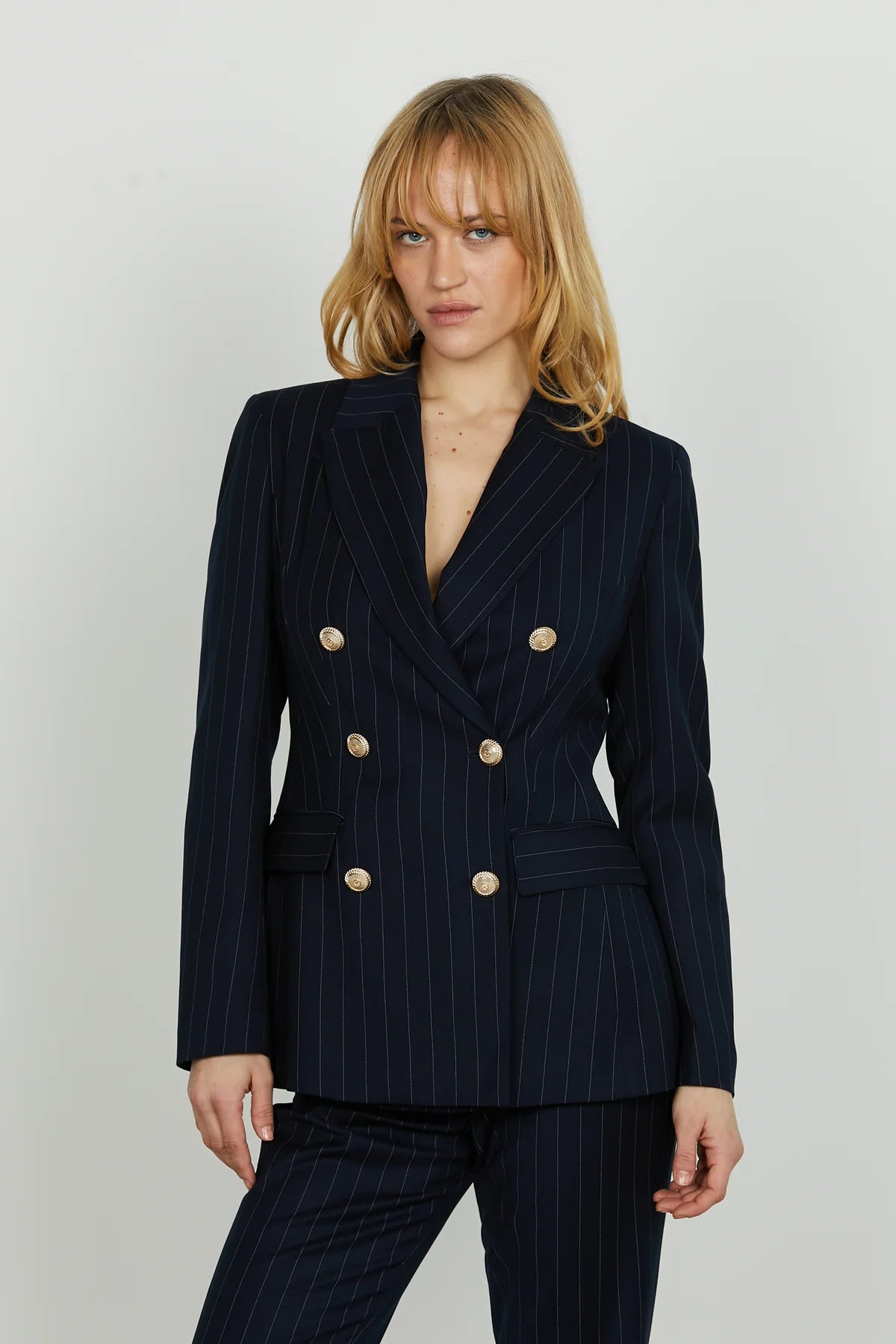 Un classico intramontabile rivisitato in chiave contemporanea. La giacca Fugam, con il suo taglio lungo e la chiusura a doppio petto, dona una silhouette decisa ed elegante. Il motivo gessato aggiunge un tocco sartoriale raffinato. Perfetta da indossare come blazer o come capospalla leggero, è il capo ideale per chi vuole un look forte, ma sempre impeccabile.