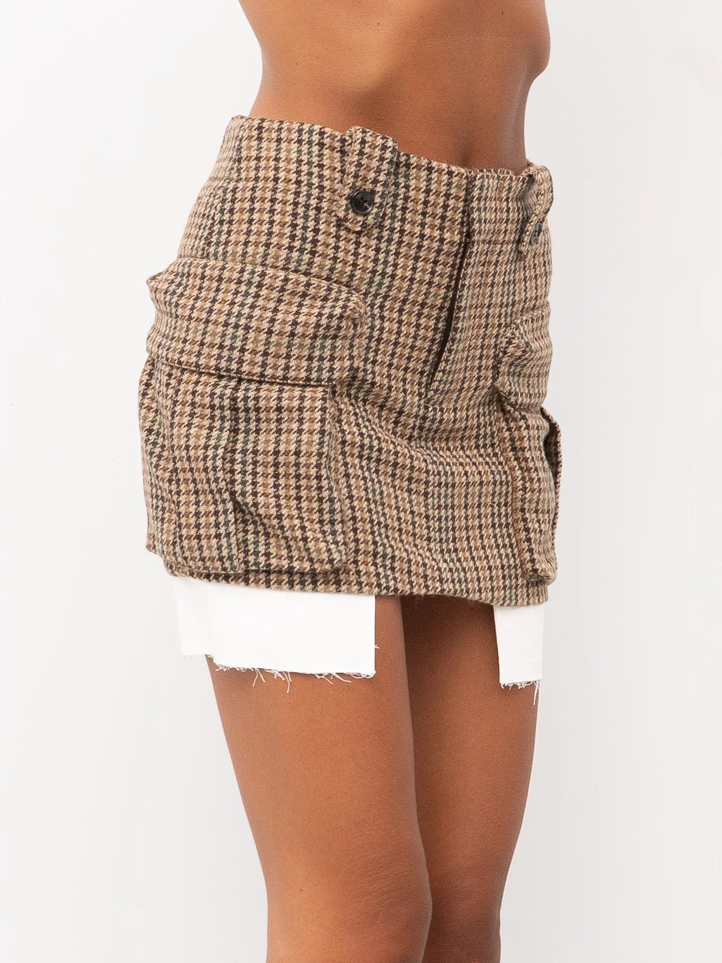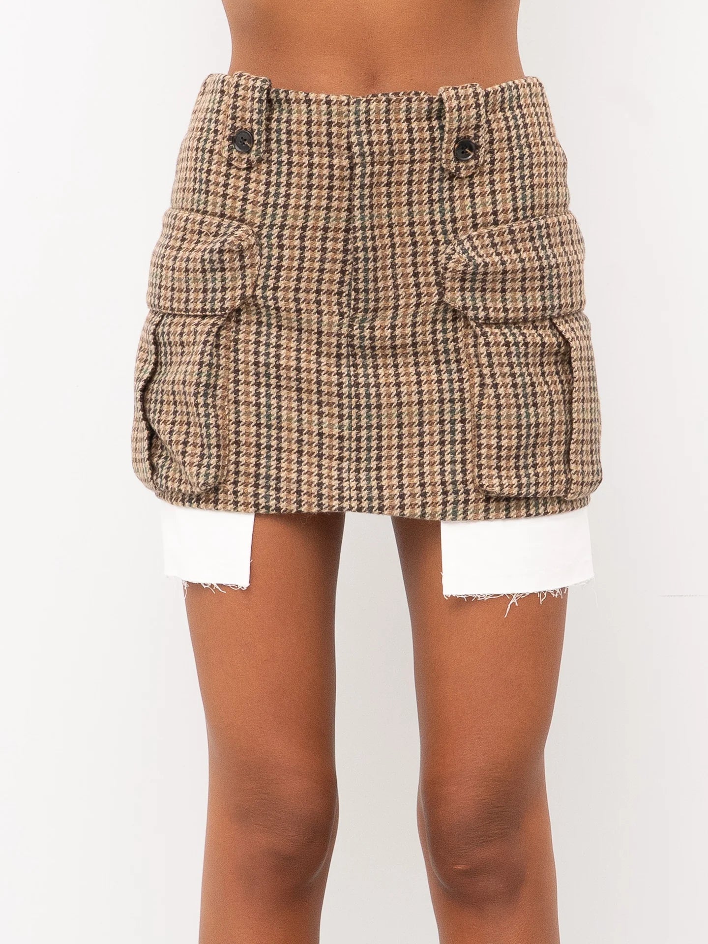 Dettagli: struttura a portafoglio con tasche applicate e bottoni decorativi, fantasia principe di Galles