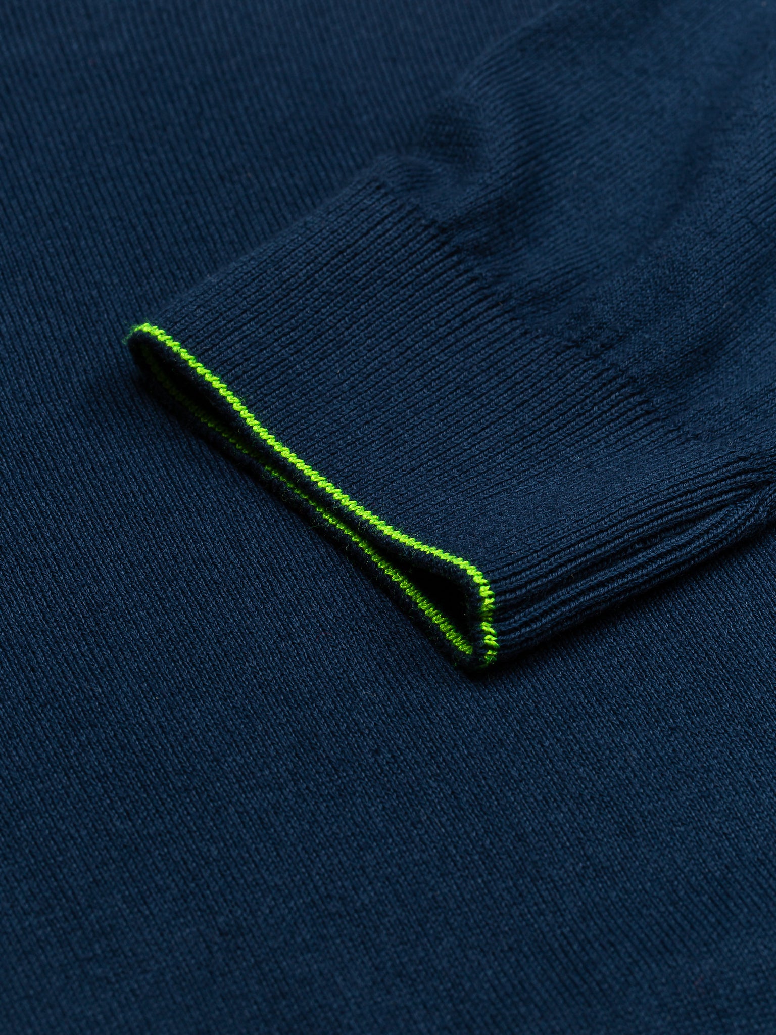 - Maglia maniche lunghe e bordi a costine con profilo fluo.