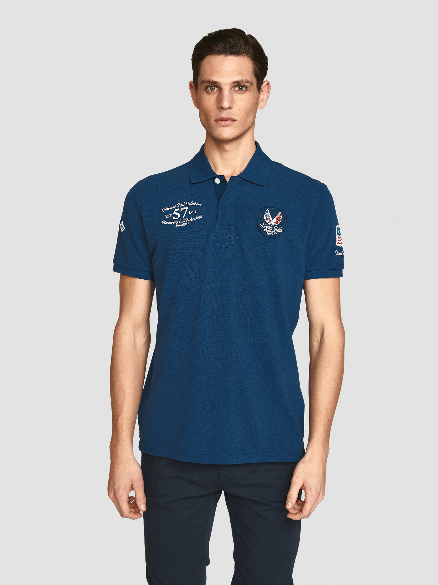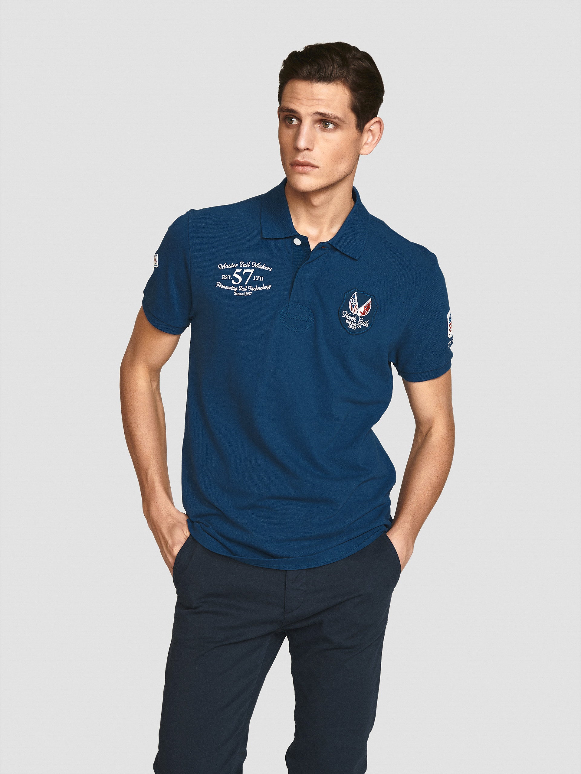 Polo in piquet di cotone con maniche corte e chiusura con bottoni. Il modello si caratterizza per le stampe e i dettagli d'ispirazione sailing.