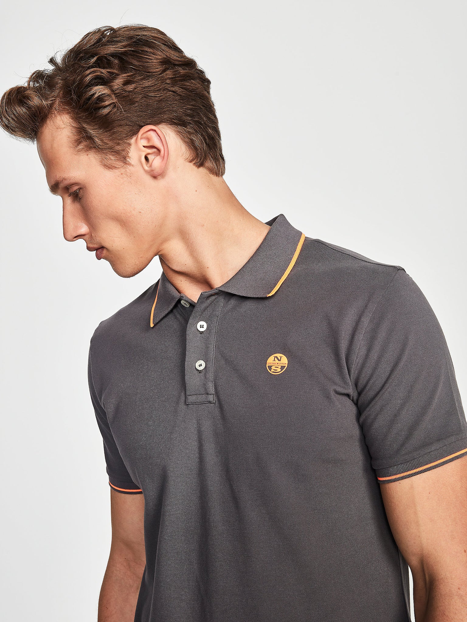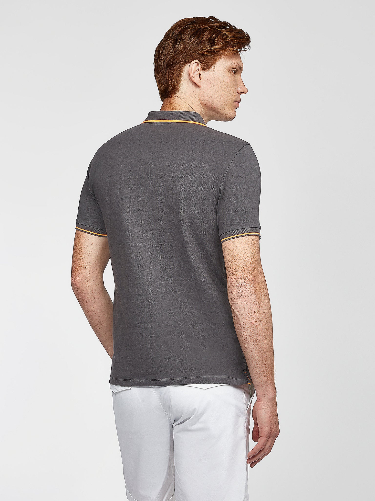 Polo dalla linea slim realizzata in piquet di cotone stretch con maniche corte e patch logo sul petto, spacchetti sul fondo.